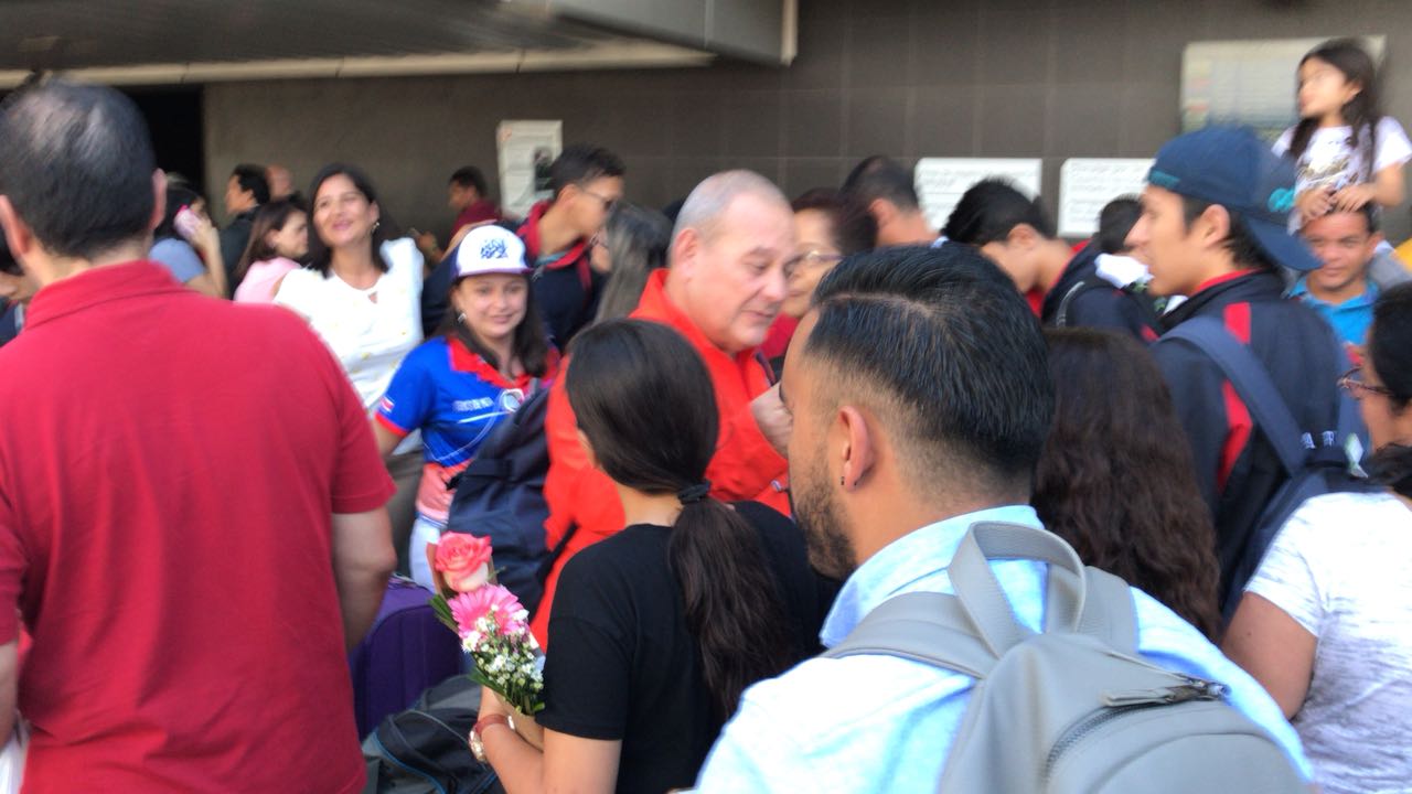 La delegación tica fue recibida por amigos familiares y el asombro de propios y extraños al escuchar bullicio que se percibía tras asomarse en la puerta de salida  del Aeropuerto  Juan Santamaría el grupo de atletas que nos representaron en El Salvador a la vez contagiaron a los presentes quienes aplaudieron a los jóvenes a su llegada.