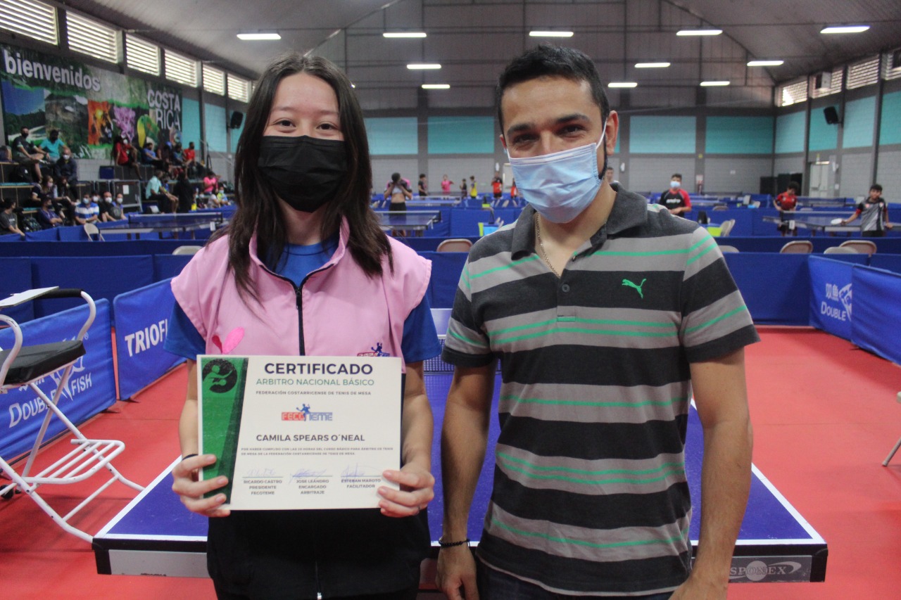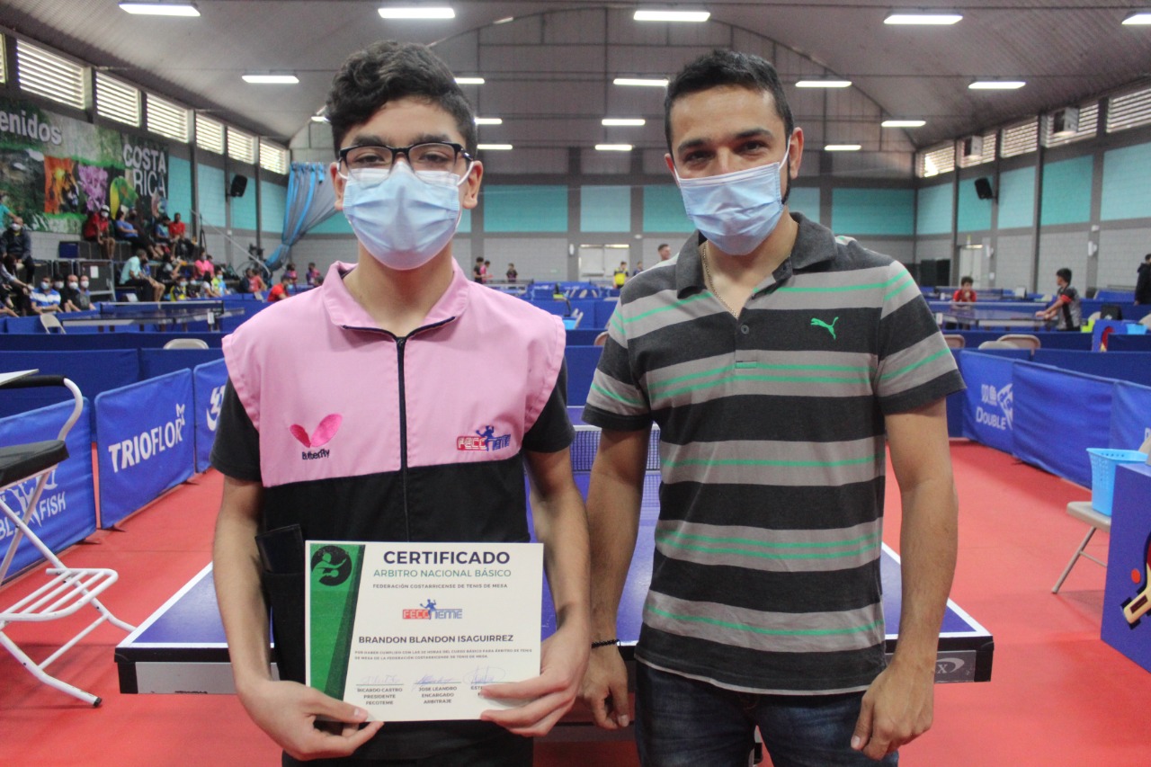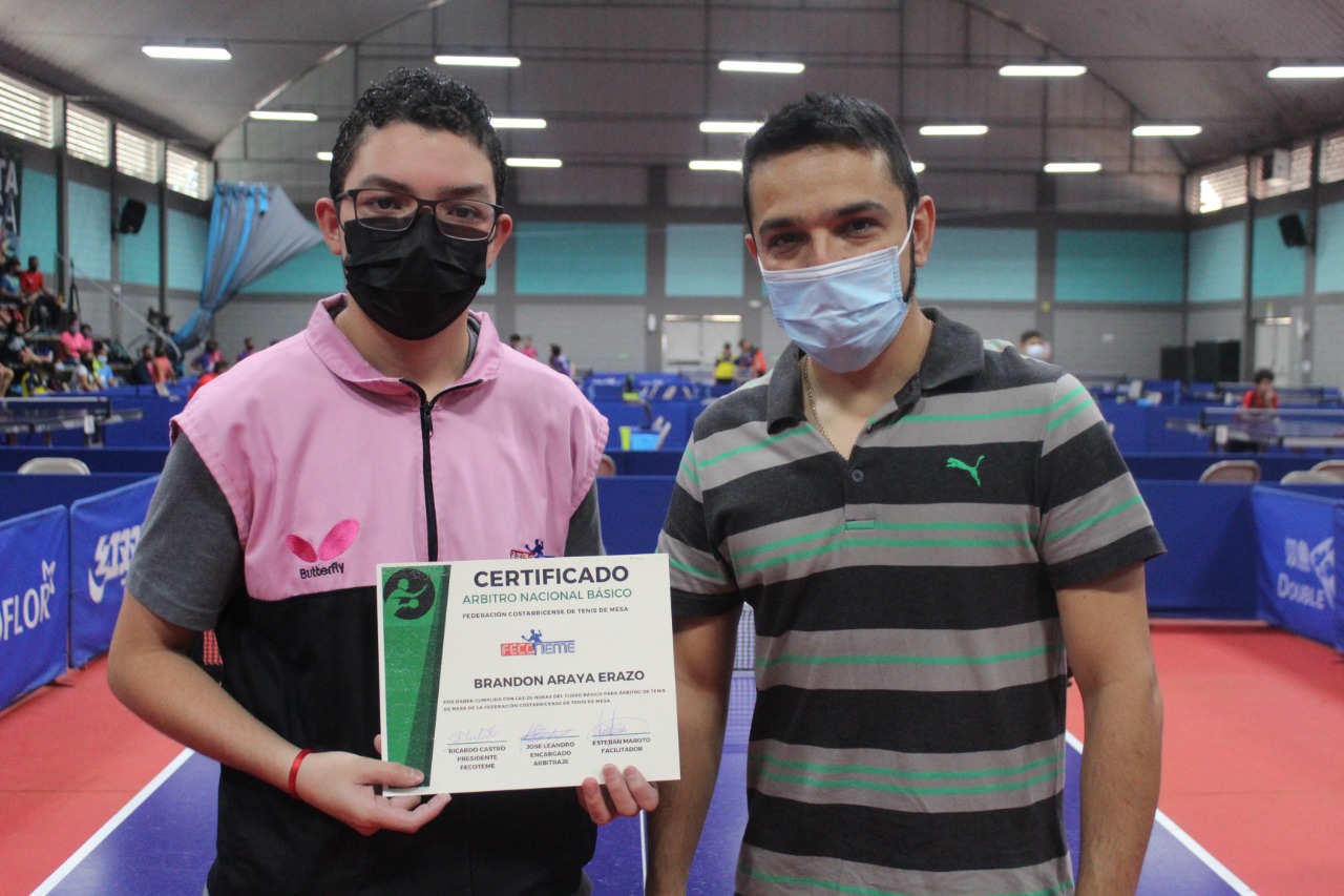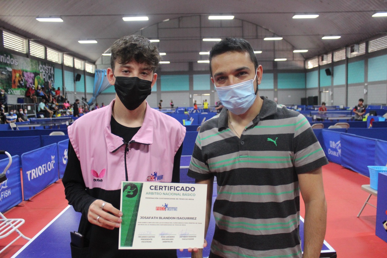La comisión de arbitraje de la Federación Costarricense de Tenis de Mesa FECOTEME, representada por dos miembros de la junta directiva José Leandro Abarca, Nixon Reyes y el árbitro internacional Blue Bagde el costarricense Esteban Maroto Coto, realizaron el pasado fin de semana la entrega oficial de certificados a los nuevos árbitros.