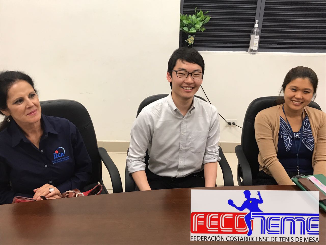 Este martes en las instalaciones de las oficinas de la Federación Costarricense de Tenis de Mesa ubicadas en el edificio del Estadio Nacional localizado al este del Parque Metropolitano la Sabana de la capital San José, se recibió a la Gerente de Administración y representante de la Agencia de Cooperación Internacional de Japón Oficina en Costa Rica (JICA) Sra. Mary Segura Torres en compañía de la Coordinadora del Programa de Voluntarios Srta. Shiho Umebayashi y el joven entrenador Sho Hashymoto.