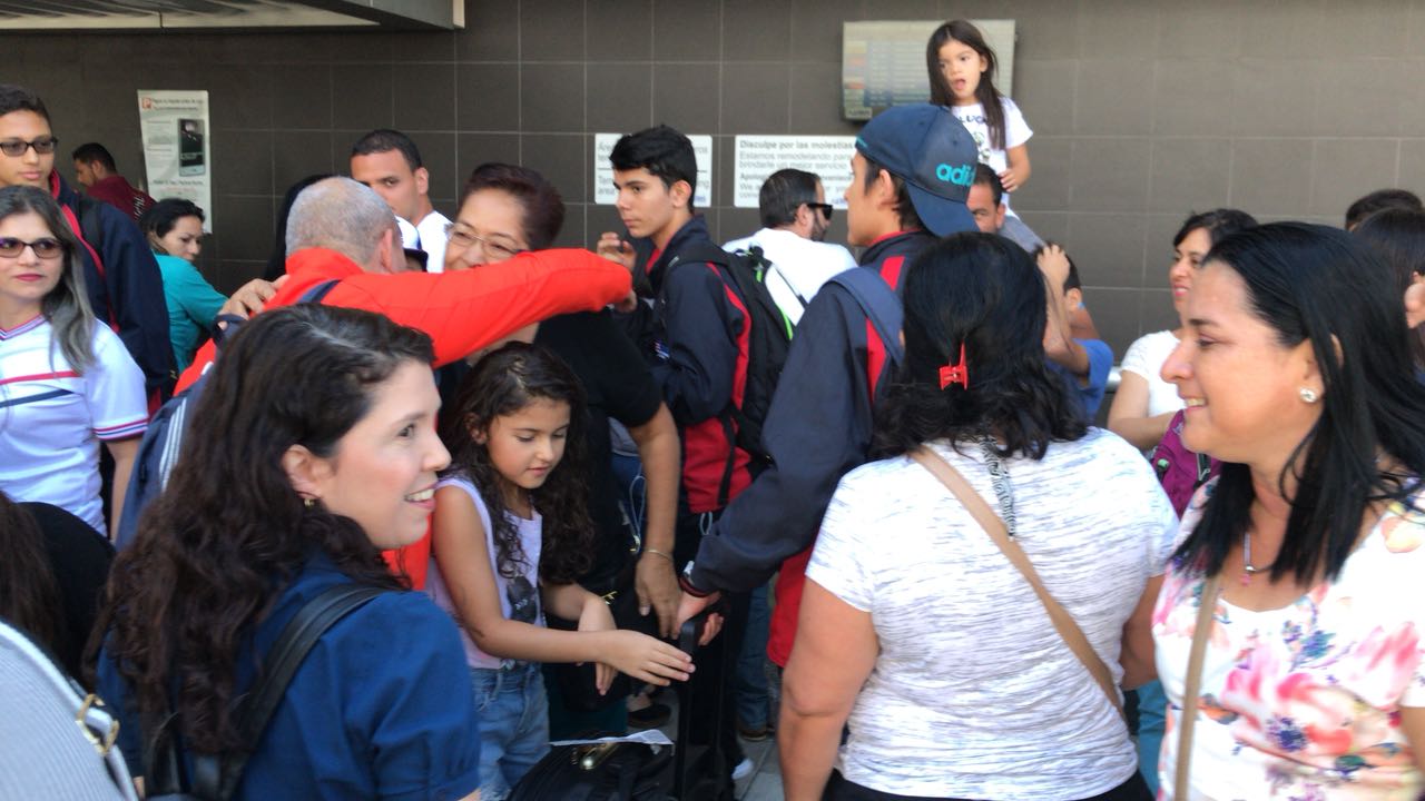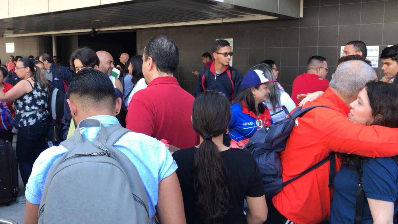 La delegación tica fue recibida por amigos familiares y el asombro de propios y extraños al escuchar bullicio que se percibía tras asomarse en la puerta de salida del Aeropuerto Juan Santamaría el grupo de atletas que nos representaron en El Salvador a la vez contagiaron a los presentes quienes aplaudieron a los jóvenes a su llegada.